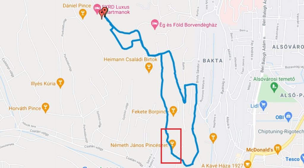Our route with the most beautiful city panorama can easily distract us from the wineries along the way. If we would still like to go somewhere for a glass of wine, we have the opportunity to do so at the Heimann Family Estate, the Fekete Wine Cellar or the Németh János Winery. The special feature of our tour is that, in addition to narrow gorges and dirt roads, our route leads through the elite neighborhood of Szekszárd.